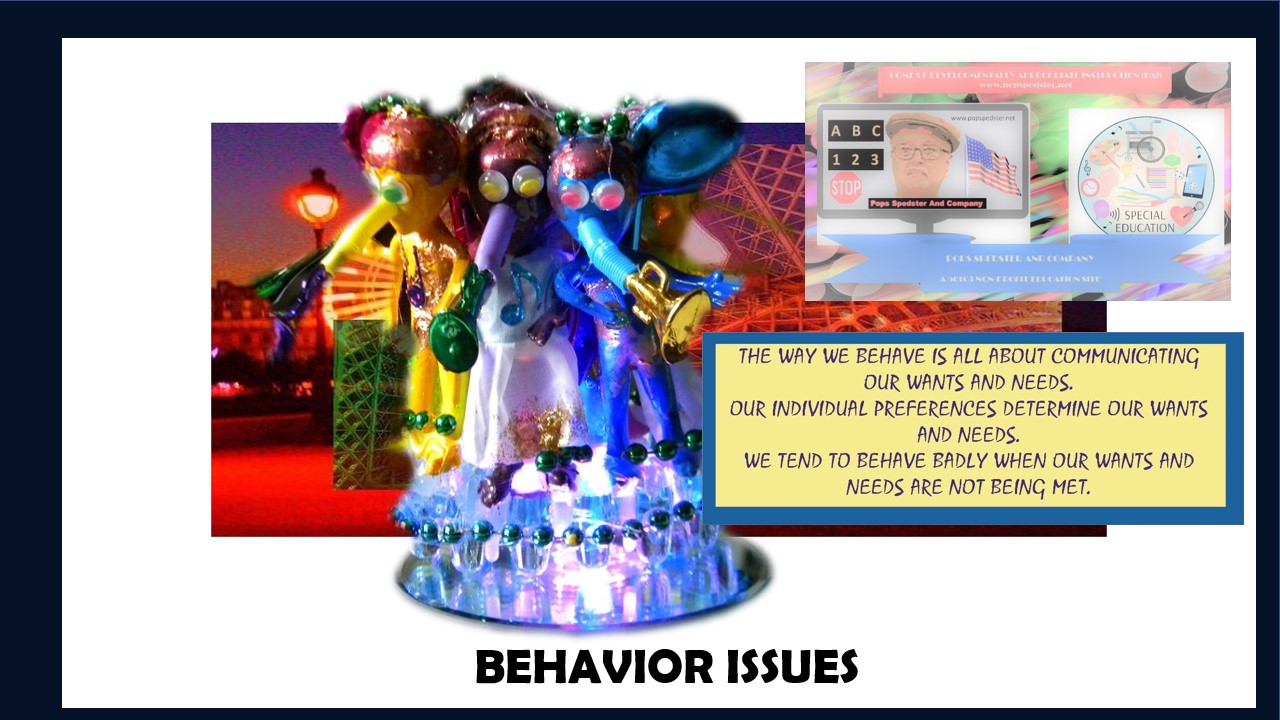 The Special Education resources contained on this site are based on my 13 years of experience teaching medically fragile students in adaptive life skills public school classrooms.Pops Spedster And Company makes no representations about the accuracy of information from third party sources contained on this site, nor do we accept any responsibility for the use of this information.While we aspire to present best practices in serving a medically fragile student population, scientific developments and research have created a fertile environment of approaches to instruction that have resulted in a changing pedagogical discipline that works to improve the lives of people with developmental disabilities.- James M. Kemp/ AKA Pops Spedster. |