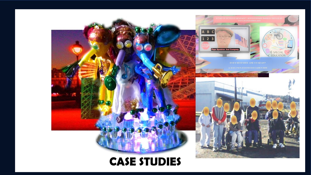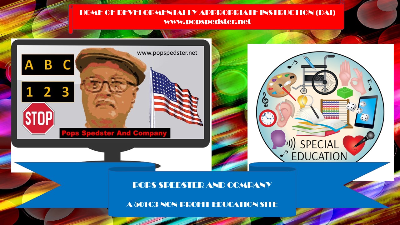 The Special Education resources contained on this site are based on my 13 years of experience teaching medically fragile students in adaptive life skills public school classrooms.Pops Spedster And Company makes no representations about the accuracy of information from third party sources contained on this site, nor do we accept any responsibility for the use of this information.While we aspire to present best practices in serving a medically fragile student population, scientific developments and research have created a fertile environment of approaches to instruction that have resulted in a changing pedagogical discipline that works to improve the lives of people with developmental disabilities.- James M. Kemp/ AKA Pops Spedster. |
